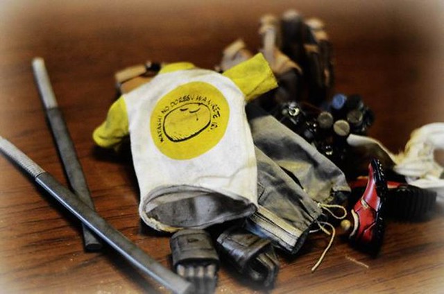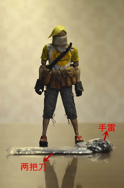 ▲ 主要配件,算上身上的一些的話,有圍巾、腰包、手雷帶、武士刀、手雷。