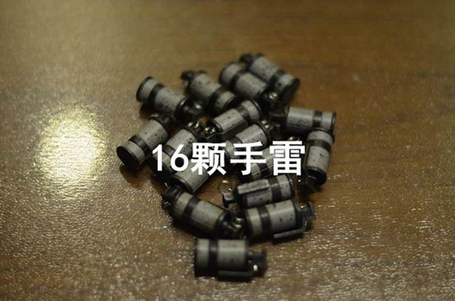 ▲ 手雷,一共16 顆,作為3A 用爛了的配件,對於TK 來說有也比沒有的好,何況,幾乎每款有手雷的TK,他們的手雷塗裝都不一樣,如上圖,小黃TK 的手雷塗裝就很有特色。