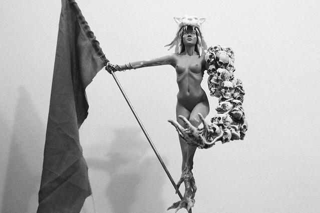 作品理念:山鬼出自《楚辭》中的《九歌》,一般常被描繪的形像大多是伴著老虎或豹的裸女,九歌中的山鬼「乘赤豹兮從文狸,辛夷車兮結桂旗」,在深山中含睇宜笑,而今...山何在,豹何在?倘若是在人類肆意開墾山林的現今社會,神話中的山鬼又會是什麼面貌呢?