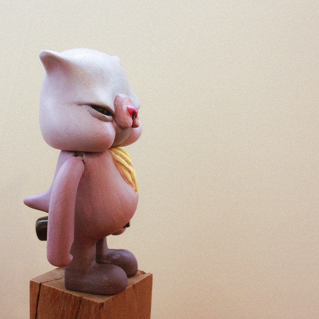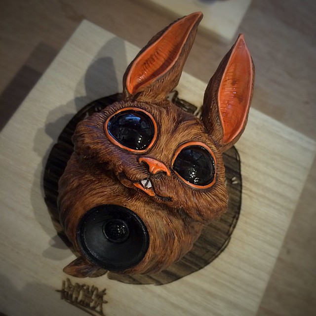 十年前開始在我的作品裡我創造了一之屬於我的兔子,我稱呼它為”bounce”。”bounce”有彈起、彈跳、跳躍之意。”bounce”的身世,出生於一座美麗的森林裡,但是他生下來就是個瞎子、也沒有雙手,牠看不到這個美麗的世界也觸摸不到這個世界,它只能用他僅剩的一對大耳朵聆聽這世界,偏偏這座森林卻是如此的寧靜。由於牠的與眾不同,所以他的個性變的有點孤僻、叛逆,再一次機緣中,有一群來自都市裡的年輕人開車經過這座寧靜的森林,車裡還放著轟隆轟隆的音樂喧囂而過,正好被牠聽到,就是這種節奏、就是這種震動的音樂、讓人有想要跟著一起跳動的聲音,他終於找到他要的聲音、音樂,於是他離開了這座森林開始到外面靠著它僅剩的大耳朵尋找這些音樂,找著找著就來到我們現在生活的城市裡。所以我們現在在街上說不定可以發現”bounce”就出現在
