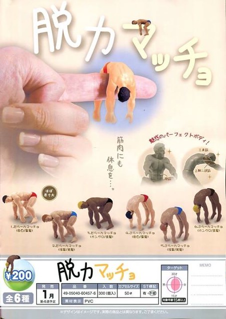 日EPOCH(エポック)玩具公司的有趣轉蛋商品「脫力貓」系列相當受到喜歡貓咪的玩具人喜愛,這次又將「脫力感」移植到人的身上變成 “脫力マッチョ” 脫力男(名稱暫譯)。