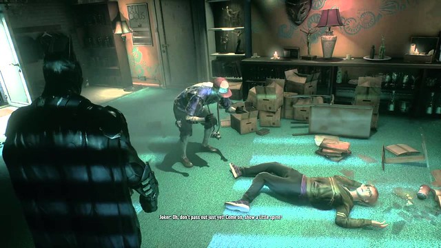 小丑也知道蝙蝠俠不會參與這遊戲,所以也講到他安置了一小時不到,就會炸掉亞克翰城市的大牆,讓所有犯人湧進高譚市中。蝙蝠俠透過小丑的暗示,來到收容所遺跡找尋炸彈,結果看似被炸死。不過其實蝙蝠俠沒有死,並來到停屍間跟戈登署長碰面,決定將小丑的遺體火化。