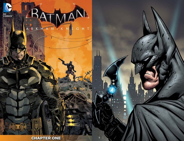 相較於左邊是講述文化的轉變,右邊的漫畫則是將重點放在各個蝙蝠俠系列的超級惡棍其想法,帶出了他們打算藉由亞克漢城市的成立,發展自己的計劃與相關動機,替遊戲做好每位角色的相關背景故事。每一回封面蝙蝠俠都一樣的姿勢,只是背景會換成該集的惡棍。