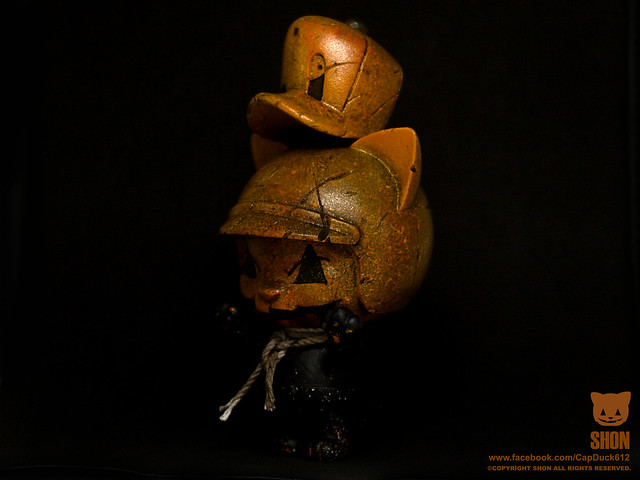 臺灣本土的玩具設計師SHON SIDE 將要推出2015 年台北國際玩具創作大展會場推出多款的限定商品啊!!繼「濺血版囚犯鴨」(PRISONERS)CAP DUCK 系列最新作品之後,又將推出另外一個經典角色「貓騎士」(CAT RIDER)的最新季節限定作品:「南瓜貓騎士」(Pumpkin Cat Rider)。隨著萬聖節的即將到來!各位玩具人是否跟小編一樣期待呢?!