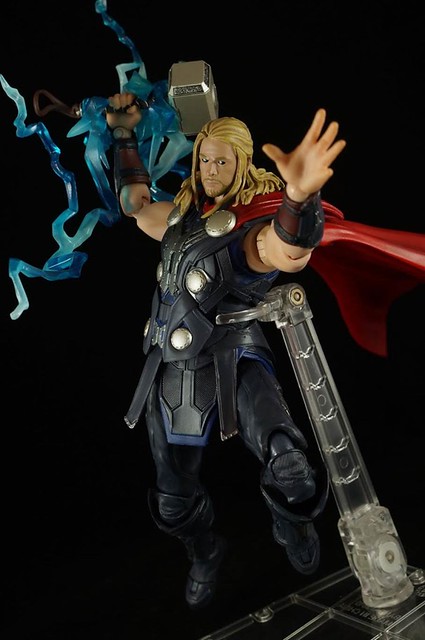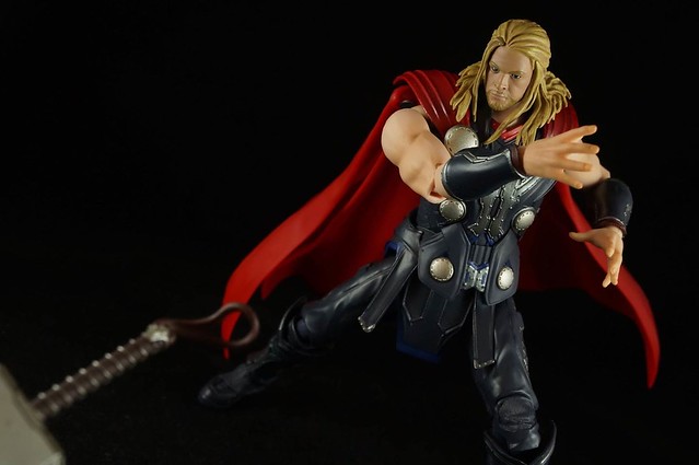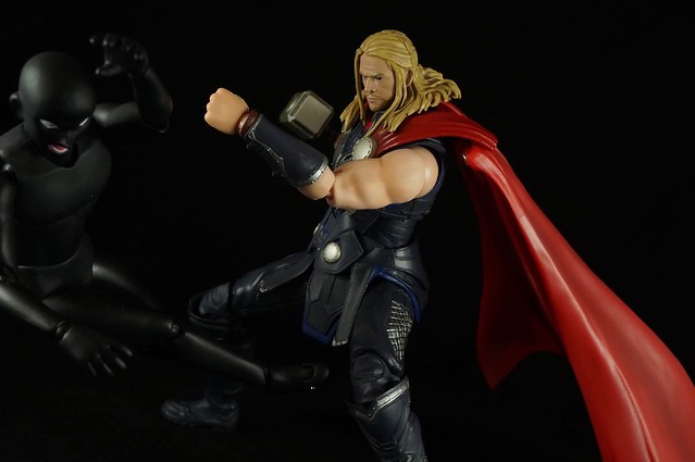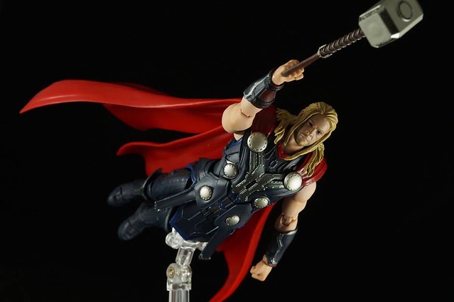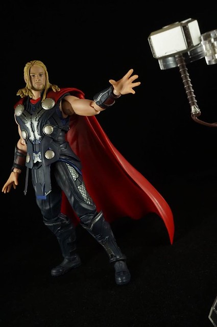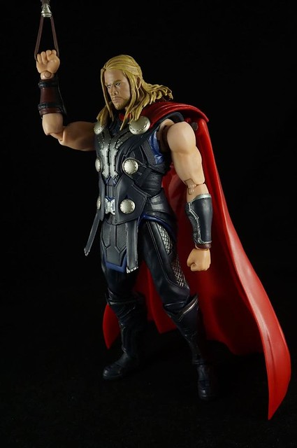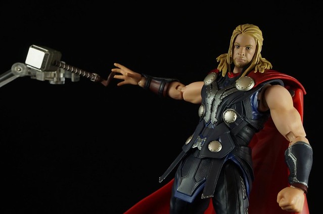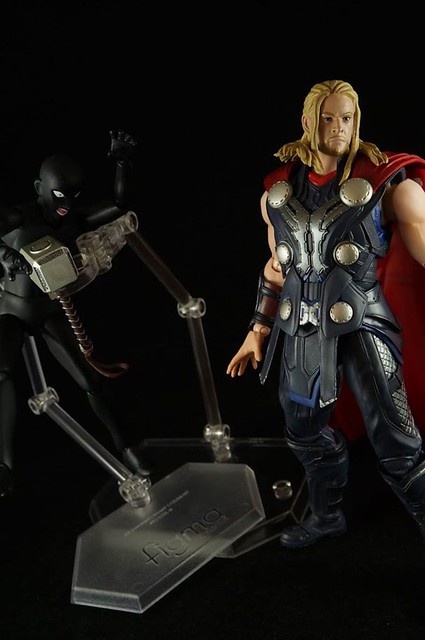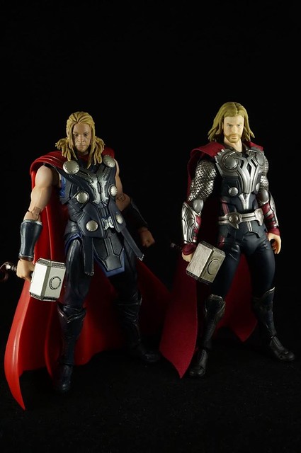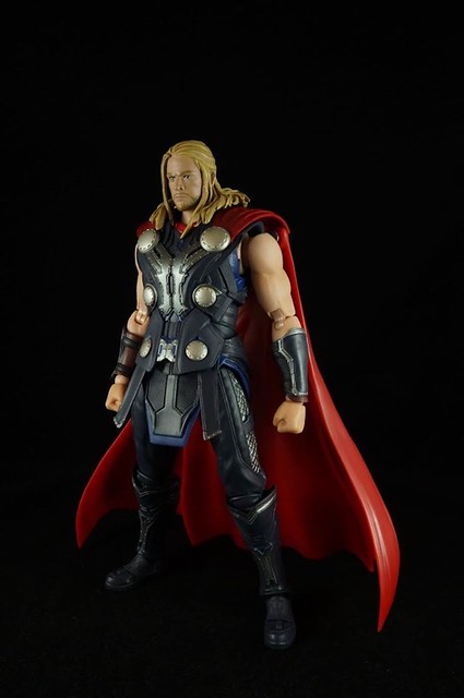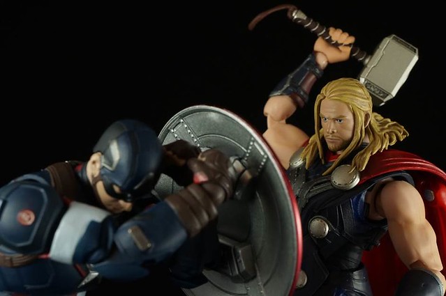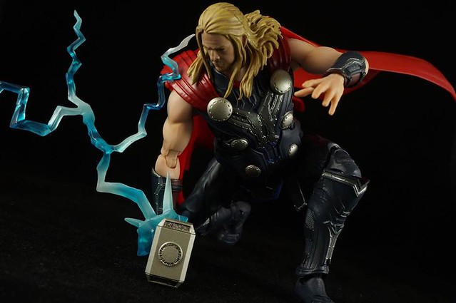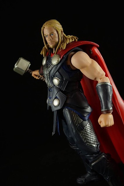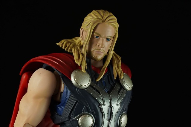 在SHF 上以復仇者聯盟2 造型登場的索爾,大貨的面相與官圖有相當的落差,不少人覺得眼睛太瞪大了。事實上拿在手上的感覺還好,不過我還是把眼珠上方加了點陰影,製造眼睛看起來比較小一點的假象XDDDD 但就很可惜只有一個頭雕,不然體態是真的挺讚的說。