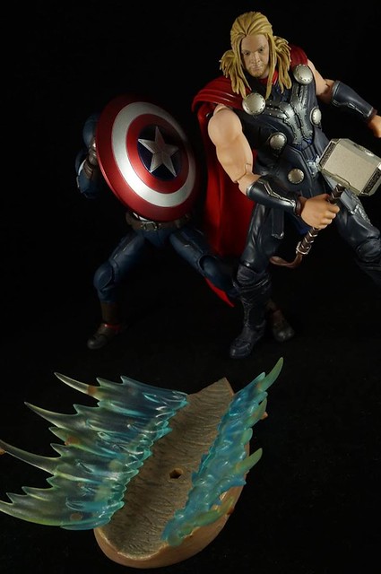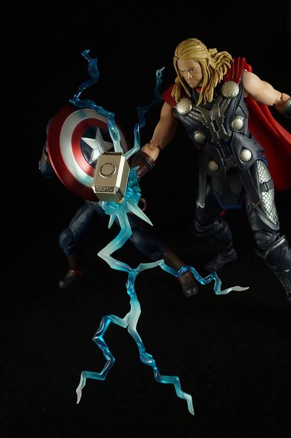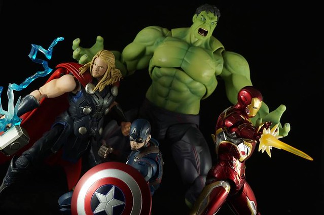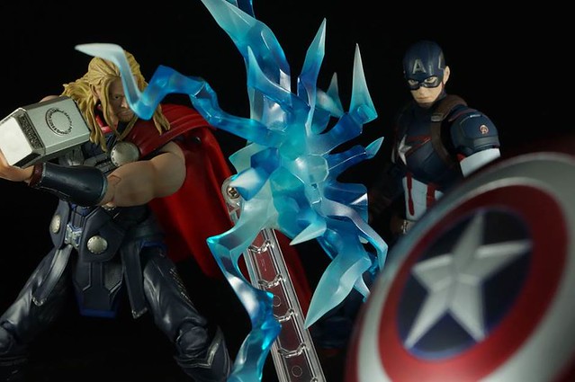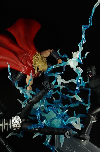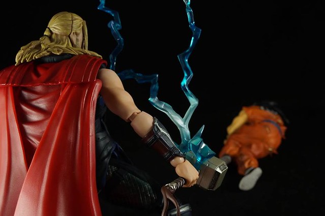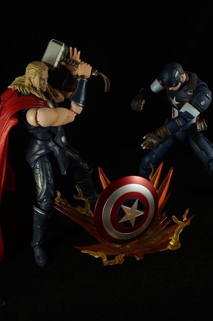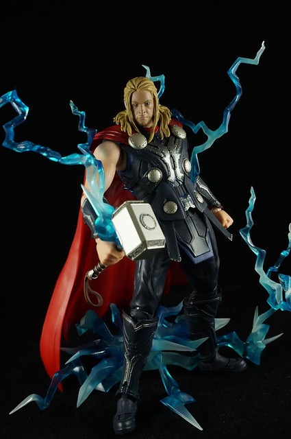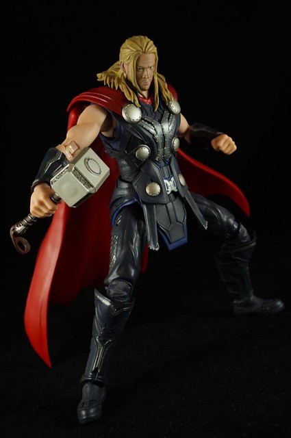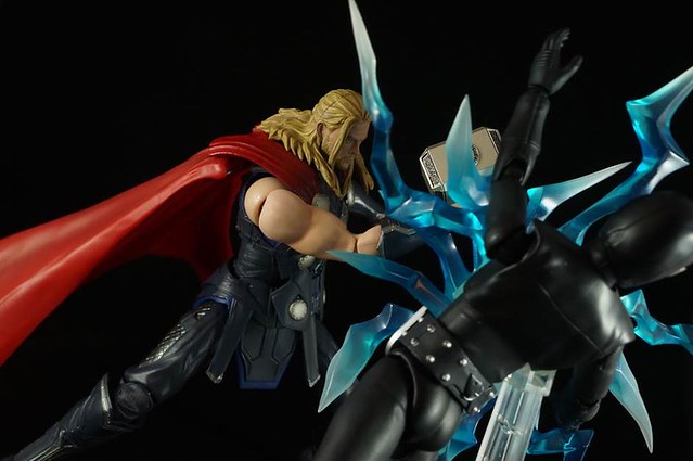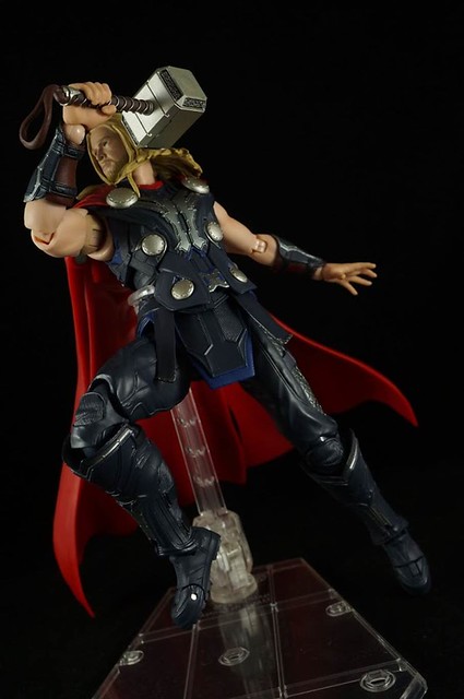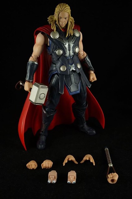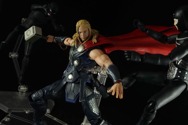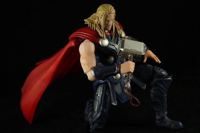 在SHF 上以復仇者聯盟2 造型登場的索爾,大貨的面相與官圖有相當的落差,不少人覺得眼睛太瞪大了。事實上拿在手上的感覺還好,不過我還是把眼珠上方加了點陰影,製造眼睛看起來比較小一點的假象XDDDD 但就很可惜只有一個頭雕,不然體態是真的挺讚的說。