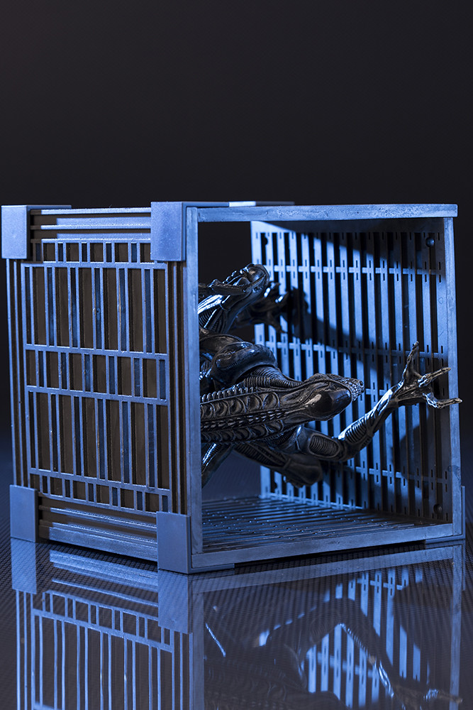 這次的作品發揮了ARTFX 系列擅長的姿態、造型細節以及塗裝技術,完整地呈現出原作中的每一個細節,本體使用了忠於原始設定,帶點茶褐色的塗裝,搭配上紅或藍色的塗裝,就能展現原作的經典場面。除此之外,搭配上附屬的6 塊太空艙地板零件,以及內藏磁鐵的手、腳部,能夠呈現出原作中異形戰士自由穿梭於各種地形、飛簷走壁的姿態!