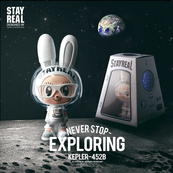 不二良也透露出為了製作出太空小兔的「特殊高透明度太空罩」和製作廠商花了很多時間,並且試過很多不同塑膠材質來呈現,也把三款全新的公仔圖騰化成精緻3D圖像,同步推出同款T-shirt與周邊生活小物等等,讓喜歡《STAYREAL》的玩具人一次可以滿足自己喜愛的公仔圖騰,喜歡潮牌《STAYREAL》系列的玩具人千萬別錯過囉!