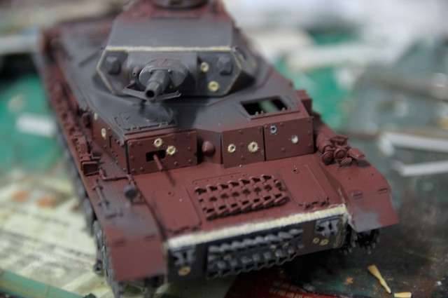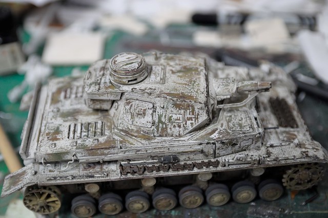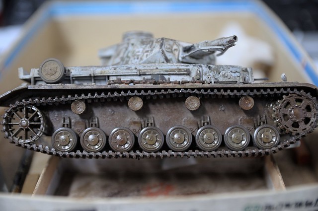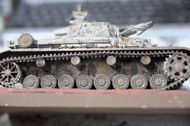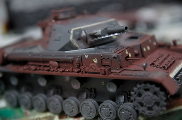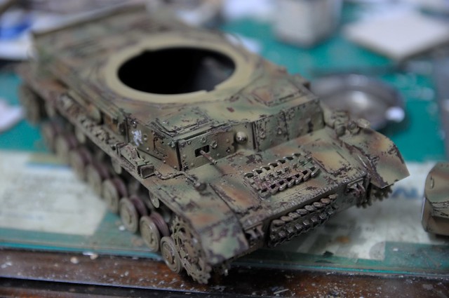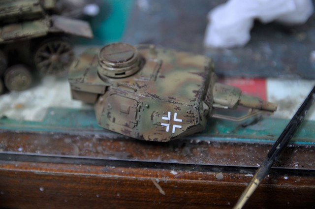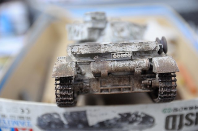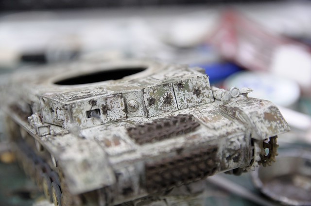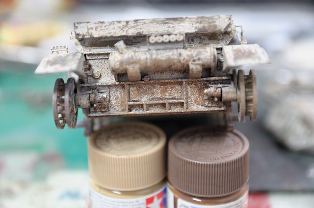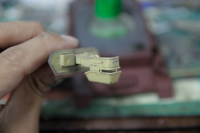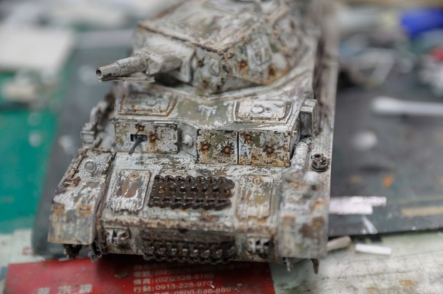 車身上的的履帶在作銹化一點,(橘+棕)色油畫顏料調很淡後,在輕輕的點上去
