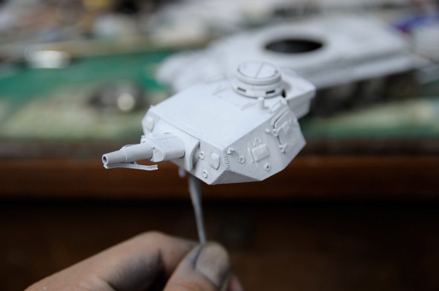 接下來要做出彈著痕跟鑄造痕,材料是Tamiya AB補土、手鑽跟刻線筆(頭尖尖的就可以了)
