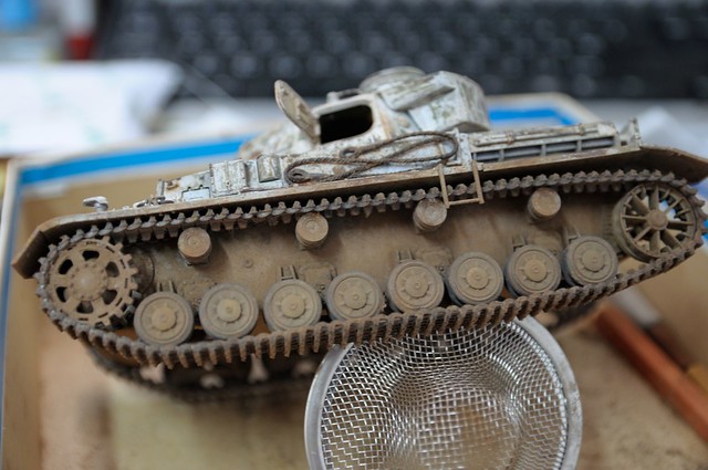 全車都噴上髮膠後,準備做冬季迷彩,全車噴上田宮白色水性漆。