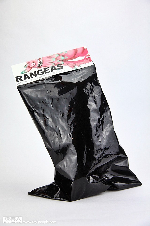 ▼ 這次所發行的Rangeas “Paradise Sunrise Version” 一共有兩種版本:透明 & 夜光。所以包裝與一般的軟膠怪獸玩具的包裝不同,採用了特殊的黑色塑膠袋包裝。採用隨機抽選的方式。