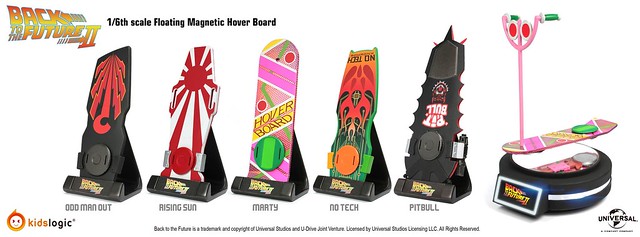 昨天2015 年10 月21 日是回到未來的大日子,許多玩具廠商也都紛紛推出了相關「回到未來」(Back to the Future)的商品。而繼大家都很期盼的「回到未來II:磁浮時光車」作品之後,Kids Logic 公司又將要推出一套五款1/6 比例的回到未來II「磁浮滑版套裝」。夢寐以求收藏1/6 比例磁浮滑版的玩具人不要錯過啦!!