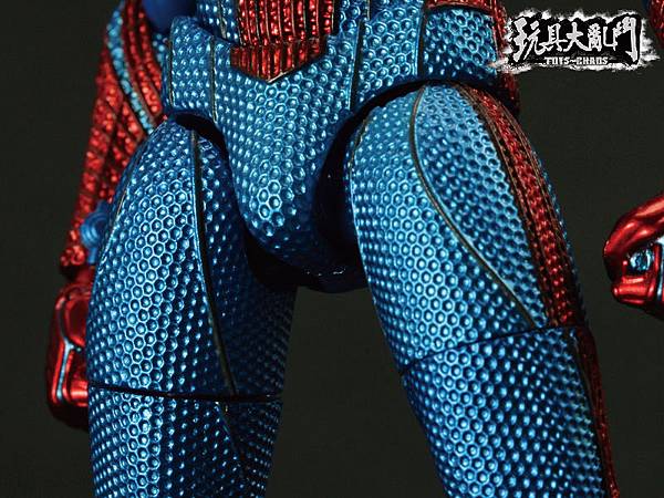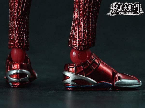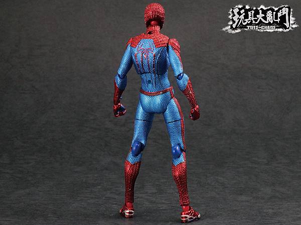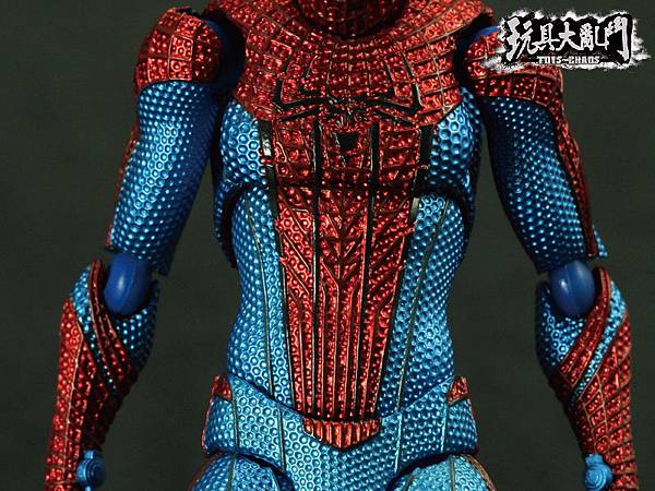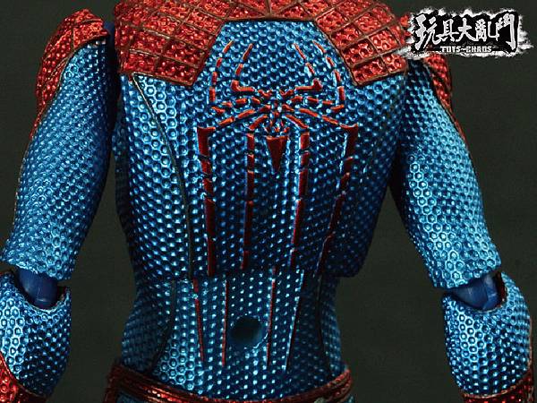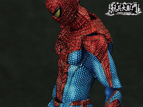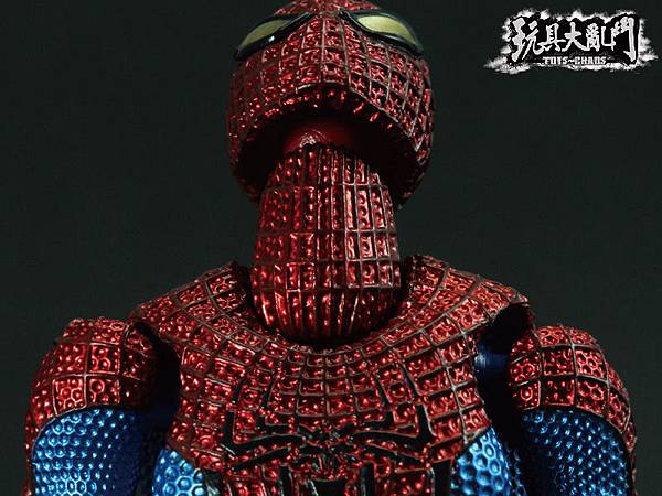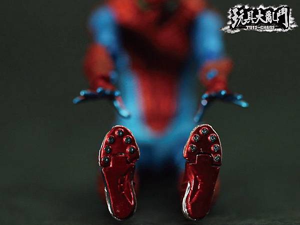 除了膝關節太突兀以外, 整體的塗裝雖然不錯, 但是前後蜘蛛人Logo的顏色都被旁邊的顏色吃掉了.