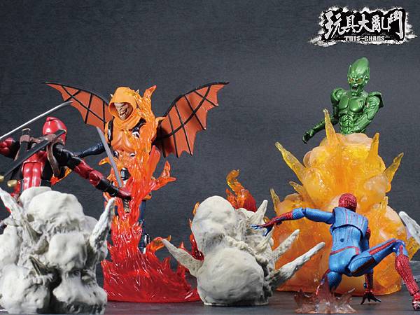 ▼內容物: 本體x1 蜘蛛絲 x2 背包 x1 支架 x1 手掌 x8 手掌+電話組合 x1 (蜘蛛絲再多個兩條會少塊肉嗎!?!?)