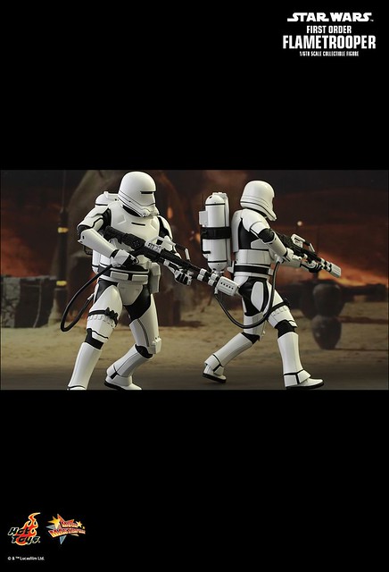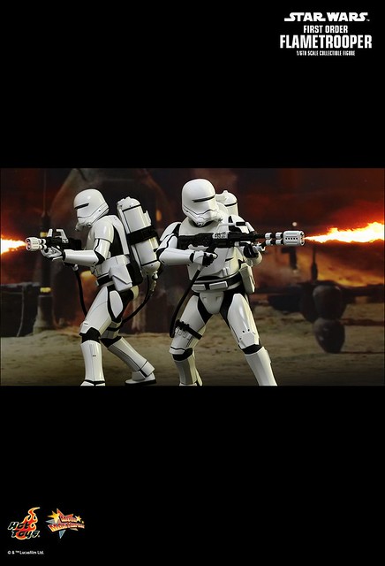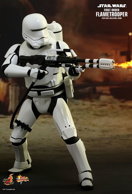 隨著電影「星際大戰七部曲:原力覺醒」上映的日期越來越近,相關的電影系列玩具也紛紛推出,香港1/6 比例人偶大廠Hot Toys 公司繼日前推出全新帝國組織「First Order」的兵種:「帝國雪地兵」(First Order Snowtrooper)與「鈦戰機駕駛員」(First Order TIE Pilot)的作品之後,又將推出全新的特殊功能性兵種:「帝國火焰兵」(First Order Flametrooper)。