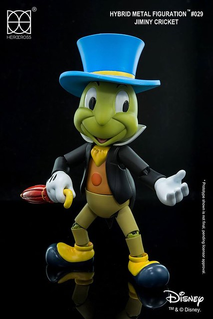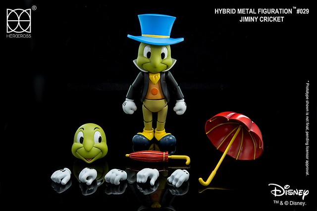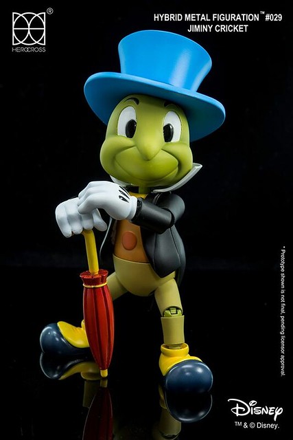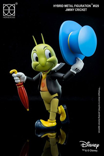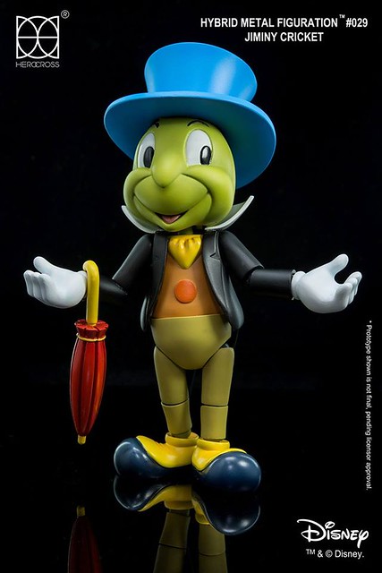 知名合金玩具品牌「HEROCROSS」公司旗下「HMF」(Hybrid Metal Figuration)系列也將要推出這個經典的迪士尼角色:HMF#029 的「吉明尼小蟋蟀」(Jiminy Cricket)作品。配備了合金身體,15 個可動關節以及5 對可替換手腕,讓各位玩具人可以擺設出更靈活與細膩的姿勢,在小配件的部分,除了有配備了2 個可替換面部表情之後,更有附上吉明尼小蟋蟀經典的帽子以及在電影中使用打開雨傘作為他的降落傘的2 把一開一合的雨傘。