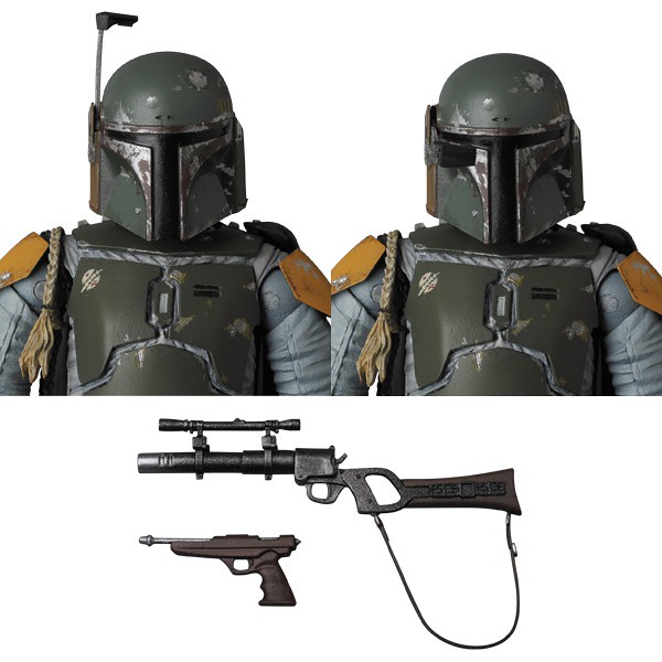這次「MAFEX」系列所推出的「波巴.費特」作品將會附上兩款的武器配件:爆擊科技 EE-3 雷射步槍(Blas Tech EE-3 blaster rifle)以及爆擊手槍(Sacros K-11 Disintegrator Pistol)。喜愛星際大戰系列作品的玩具人不要錯過囉!