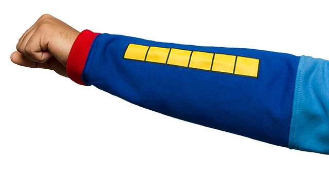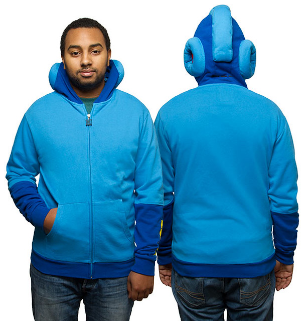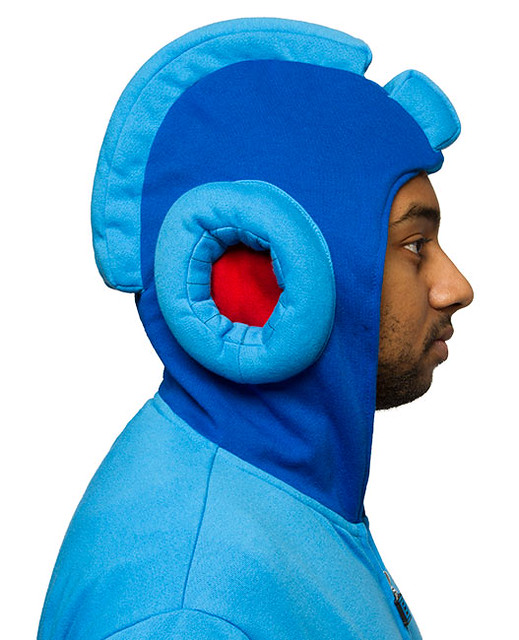 以重現8-bit 時代造型為設計,日本版包含了藍色(任天堂版)與黑色(GAME BOY版)兩種;美國的版本同樣是獲得CAPCOM的授權,但僅發行了藍色版本。這次的新版本,直接把洛克人的深藍色手部造形設計在外套上,只要把袖口向後翻就能夠露出紅色砲口,呈現出蓄力攻擊的完整造型。除此之外,帽子頭部的設計也較原版更加的突顯、醒目,讓變身洛克人的造型更加地完整!