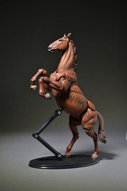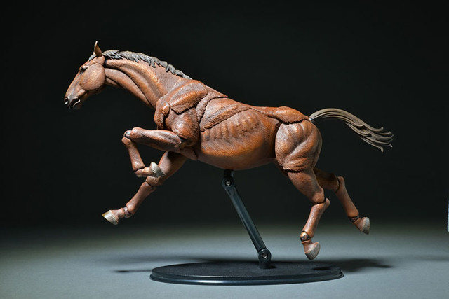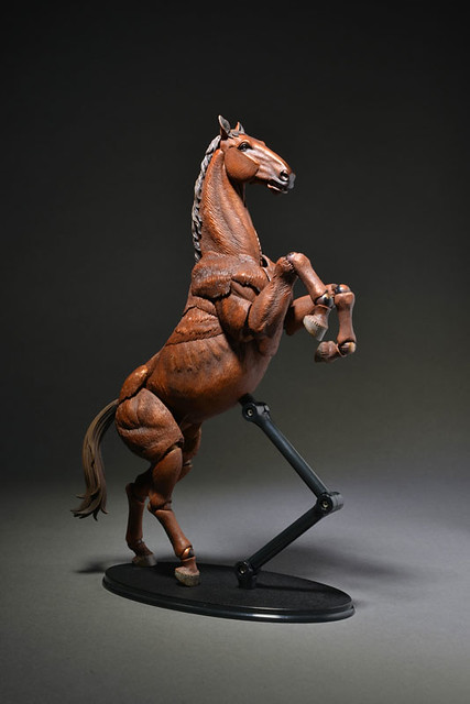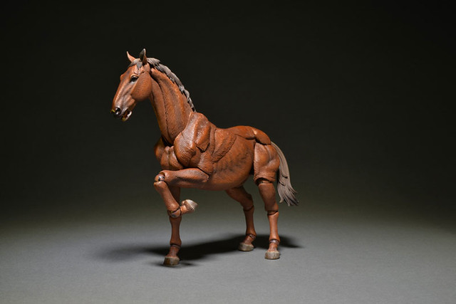 這次公開的是上色版本(着彩)以茶色(栗毛色)來呈現,身上多處的輪轉可動關節用來表現馬的奔跑、低頭等等各種活動或是休憩的姿態,如果玩具人有收集其他玩具廠商所推出進擊的巨人12分之一可動系列,不仿可以拿來作為調查兵團所騎的馬匹,更多和其他系列可以互動的玩法,喜歡竹谷隆之老師的輪轉可動佛像系列的玩具人可以參考一下這次「KT計劃系列」精彩的動物馬可動商品歐!