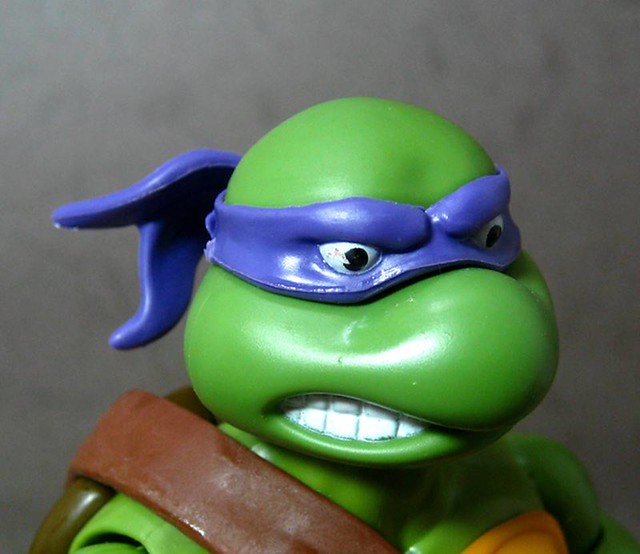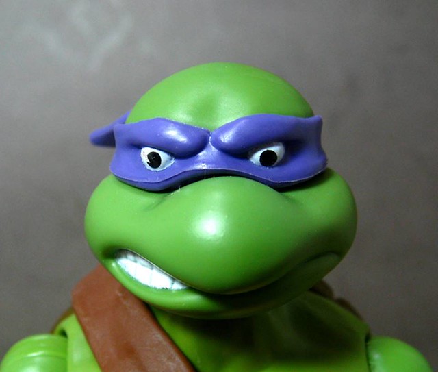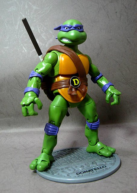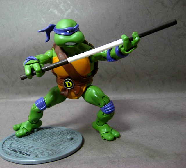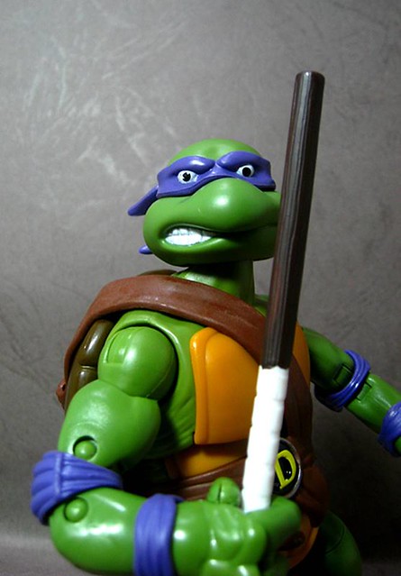↓Donatello(多納太羅/紫葡萄),暱稱Don,著紫色綁帶,招牌武器為長棍,擅長研究發明,被隊上視為智囊般的存在