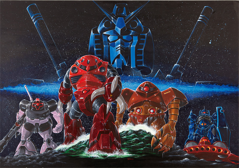 大河原邦的插畫作品,擅長使用對比強烈的背景色,營造出風雲詭譎的氣氛。但茲冠克的爪子為什麼會從三爪變四爪一直是個謎。(你知道的太多了)