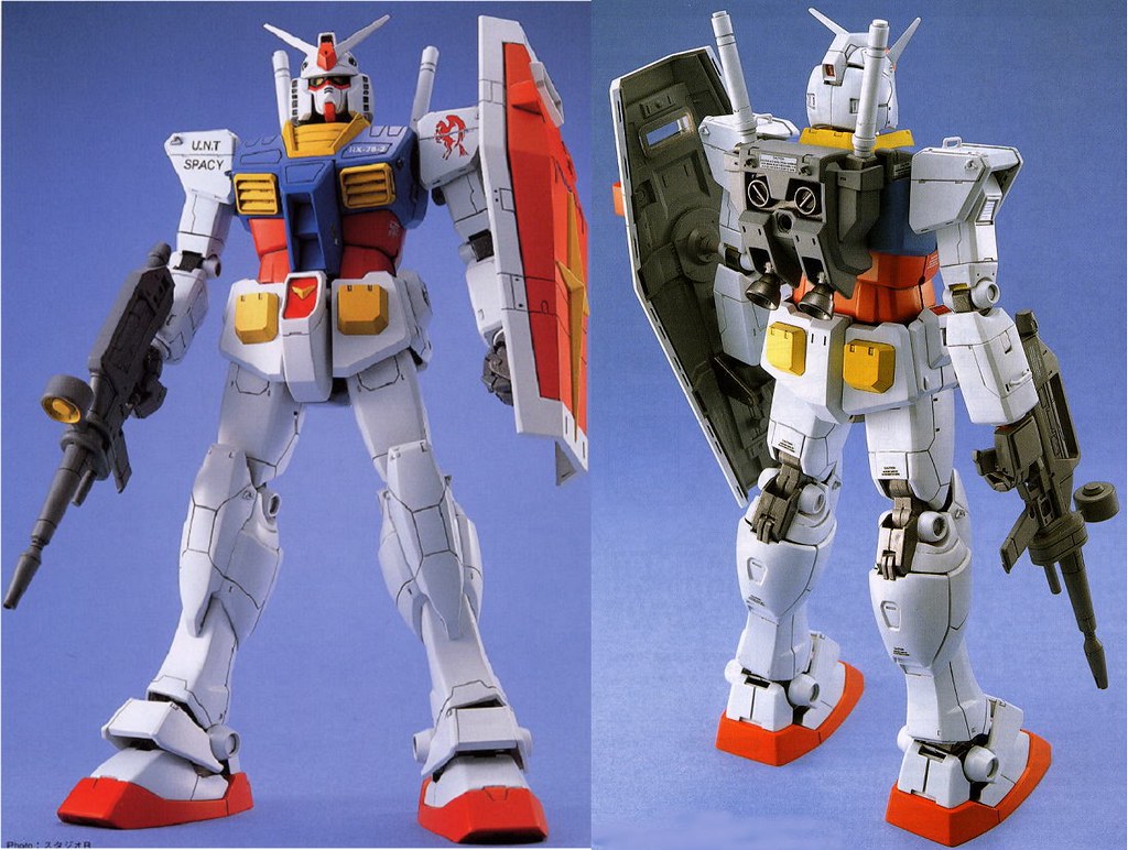 1995年,首款MG鋼普拉RX-78-2鋼彈,便是由大河原邦男擔綱設計,從最早的動畫造型加入細節及內構,更能表現巨大機器人的寫實感。