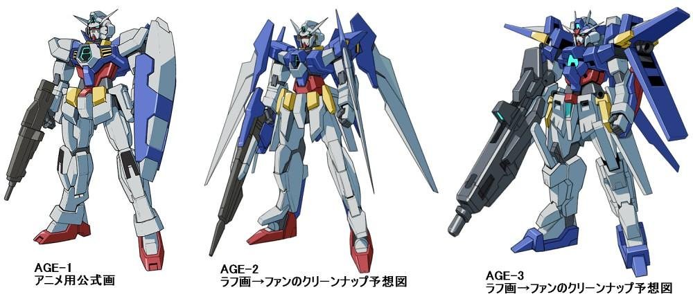 《機動戰士鋼彈AGE》中的1~3代主角機,可以說是將宇宙世紀的初鋼、Z鋼彈和ZZ鋼彈,以新時代的風格重新再詮釋一次。