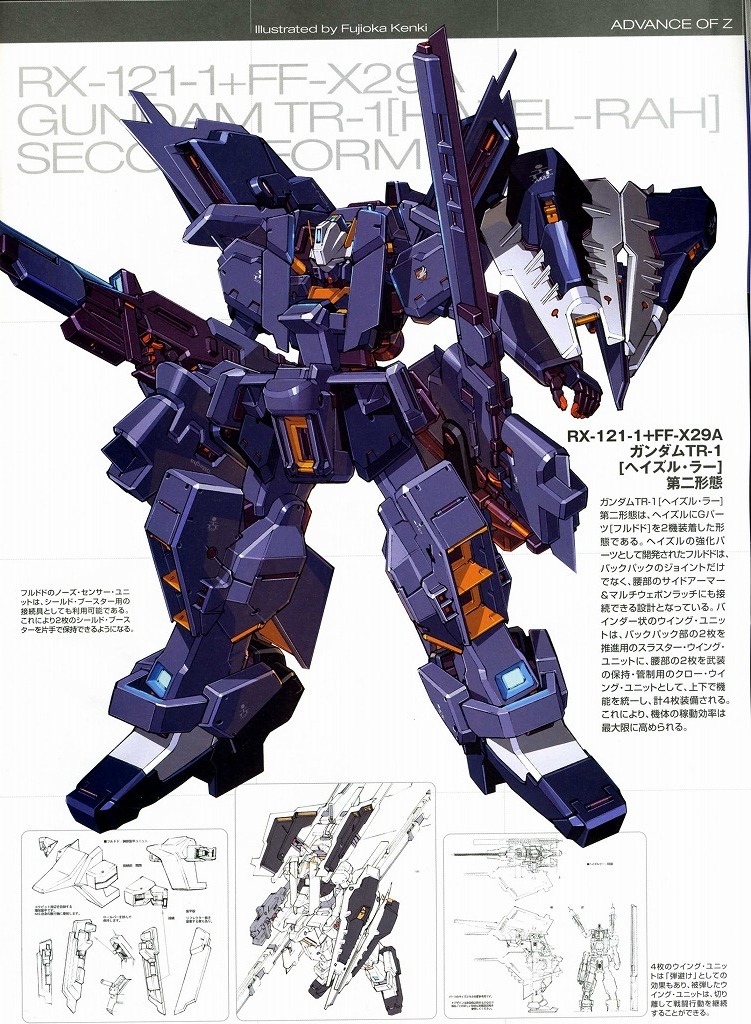 藤岡建機從2002年開始在《電擊HOBBY》(目前停刊)為《ADVANCE OF Ζ迪坦斯的旗下》擔任機械設定,在機械表現上有其獨到之處,螺栓、橫桿、噴嘴和進氣口等細部設計非常有味道,尤其擅長採取無上限的沿伸外掛武裝做為表現方式,盾牌、彈匣、燃料管要多少有多少,手臂、腳跟、砲管,愛掛幾組掛幾組, 其誇張程度連最會開外掛的印度人都要甘拜下風。合不合理不重要,反正就是帥到你會怕啊。