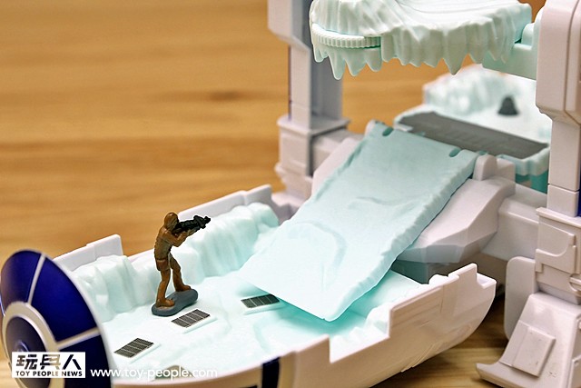 ▼ 雖然都是冰雪星球的地貌。不過一側是荒蕪的凍原,而另一側則是設計成冰雪山洞中的反抗軍基地造型。除此之外,還因應高低差設計了坡道,打造出了場景的層次。