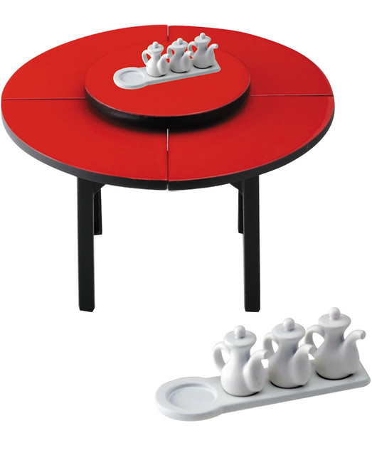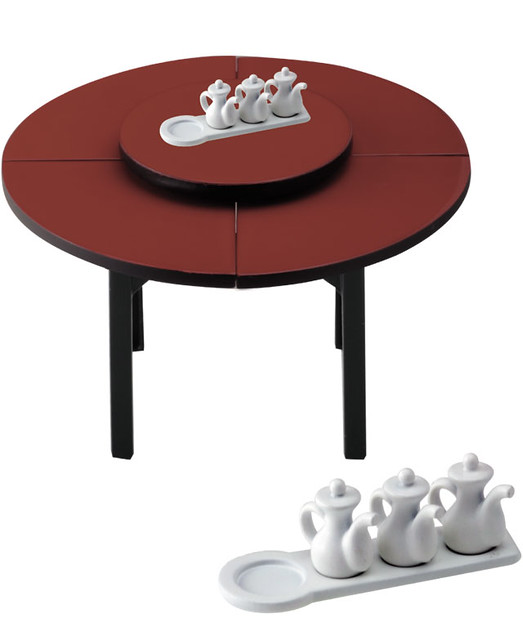 專門推出有趣味轉蛋商品的Epoch廠商曾推出過《美術教室系列》的折疊畫架和圓板凳,這次將以「中華料理店」為主題把裡面特別的旋轉圓桌和有中華圖騰風格的椅子、外送的箱子等等,都縮小成轉蛋尺寸的大小,收集多組的桌椅合起來感覺還可以變成一間迷你中華料理店,旋轉圓桌上面的圓盤真的設計成可以旋轉,外送的箱子的門也製作成可以打開的模樣。