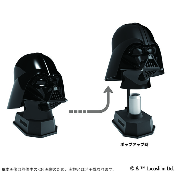 這一款黑武士頭盔迷你冰箱,最大的賣點在於使用1:1比例,細緻地呈現了黑武士的頭盔造型設計為迷你冰箱,除了造型之外,造型外觀的材質也相當地講究。頭盔加上底座高約400mm,平常是展示頭盔收藏的用途,但是只要把頭盔向下壓,頭盔就會向上升起,內部能夠冷藏一罐350ml 的鋁罐飲料。 除此之外,每次開關頭盔時都會發出黑武士主題的音效,包括了原作電影所使用、經典的呼吸聲或光劍音效。