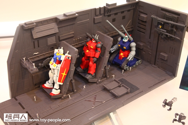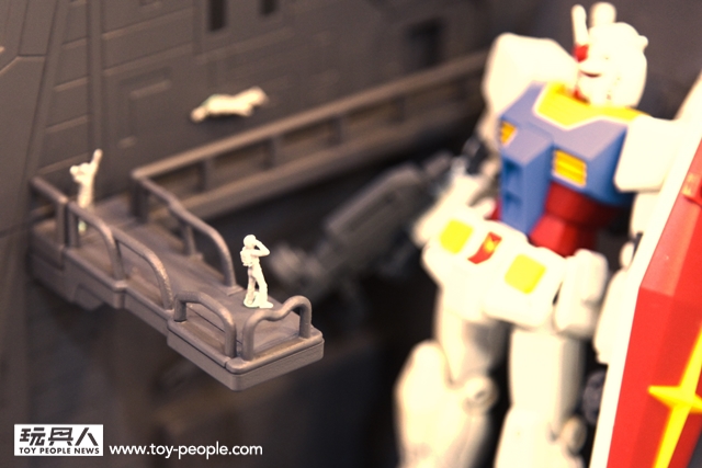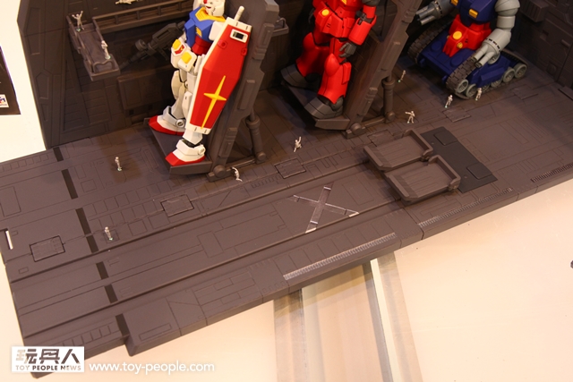 其中,最受矚目的作品之一,就是全新系列Realistic Model Series。這個系列以簡單的組裝,就能夠打造出搭配1/144 比例鋼彈模型的模型場景。首款作品「白色基地 彈射甲板 場景組」,把軌道與地台拼組之後,還能做出超過1000mm 的超長艦上彈射裝置型態。