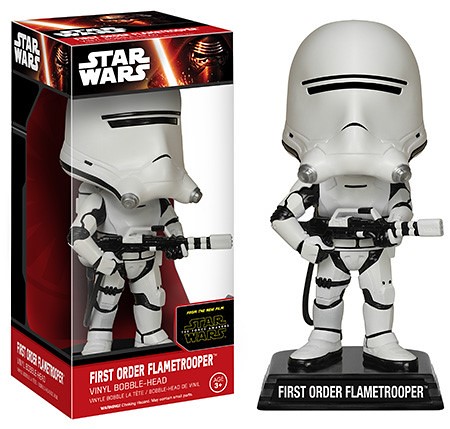 在包裝上與第一彈星際大戰系列相同,亦採用了搖頭娃娃的造型,這次要推出的五款包括:帝國First Order 組織帝國暴風兵(First Order Stormtrooper)、帝國火焰兵( First Order Flametrooper)、白兵版芬恩(Finn Stormtrooper)、脫帽版基羅.雷恩(Kylo Ren)以及C-3PO。相信之後還會有更多其他角色公佈,不知道這次FUNKO 公司會不會也在RIDE 系列推出一些全新的載具作品呢?!
