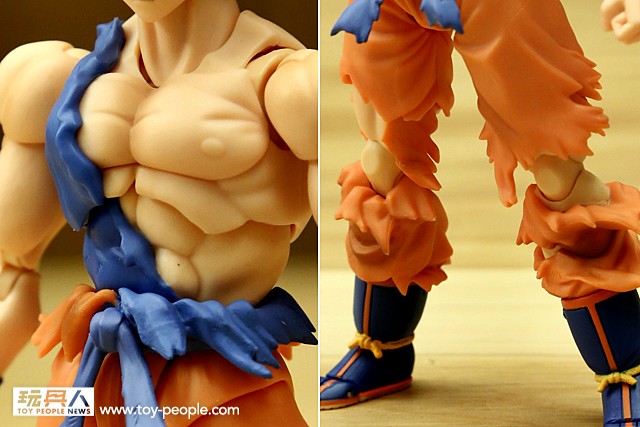 ▼ 悟空垂墜感很好的寬鬆道服褲,在這款作品中展現了巧思,使用雙層的設計,既能夠隱藏大腿處的可動關節,又能夠做出腿部旋轉的動作。除此之外,褲子能夠表現出寬鬆的效果,並且展現多層次的感覺,超讚!
