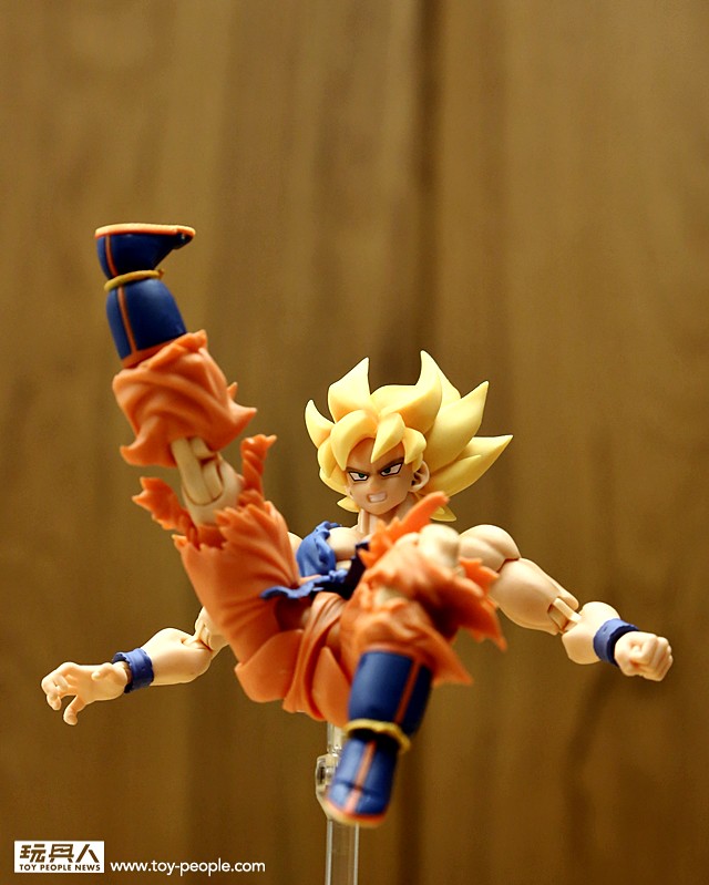 ▼ 接下來就讓我們看看各種動態的表現吧! 說到孫悟空,怎麼能不提到他的招牌絕招「龜派氣功」? 一般可動玩具會受限於壯碩、硬質的胸部造型,而不容易做出雙手前伸合併的造型。但是這一款超戰士覺醒Ver. 能夠輕鬆做出這個姿勢~