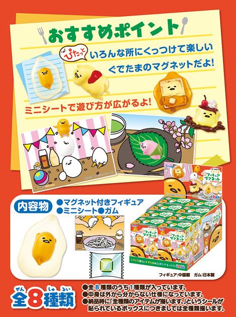 療癒界的天王「蛋黃哥」又再次的進化啦!!由日本知名盒玩品牌RE-MENT 公司所推出的人氣角色「蛋黃哥」的最新盒玩作品:「蛋黃哥立體造型磁鐵」(ぐでたま ぴたっとフィギュアマグネット)登場囉!!繼之前推出了「開運蛋黃哥」的食玩作品之後,RE-MENT 公司又要結合「蛋黃哥」推出立體造型的磁體,小編只能說蛋黃哥:你到底是要入侵家裡多少地方啊?!