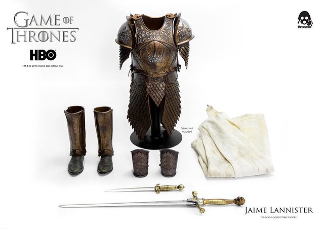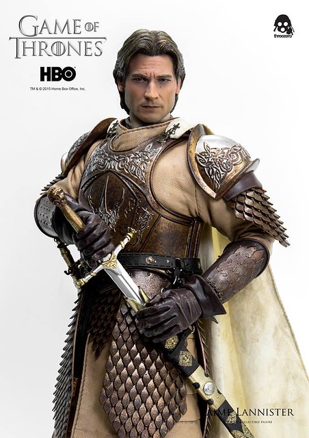 threezero 公佈了弒君者「詹姆.蘭尼斯特」的完整官圖啦!由丹麥男演員尼可拉.科斯特-瓦爾道(Nikolaj Coster-Waldau)所飾演的這個角色可謂是在影集冰與火之歌:權力遊戲中非常受影迷喜愛的角色。亦正亦邪的詮釋也讓大家對這個角色又愛又恨。不過這次threezero 公司在其頭雕的雕刻上也下足了苦功呢!當然,配件的部分更是毫不馬虎,從逼真帶有舊化質感的御林鐵衛裝甲到整體服裝的剪裁都相當的細膩,而在武器長劍、匕首、劍鞘腰帶、金屬鈕扣製作的部分也都非常的完美。喜愛冰與火之歌的玩具人不要錯過這款作品啦!