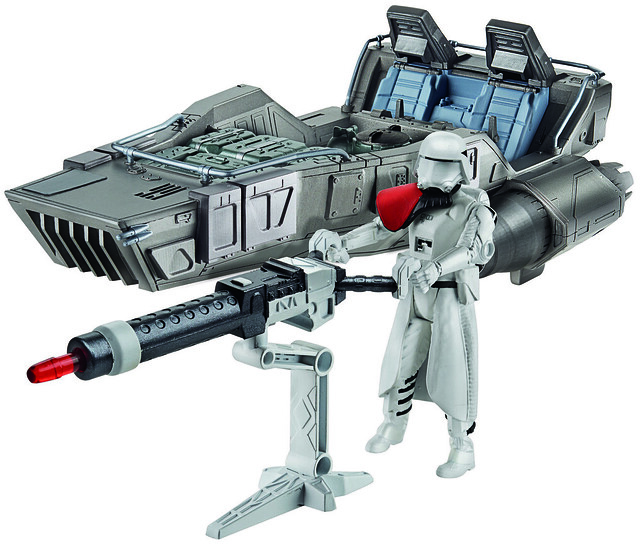 孩之寶《星際大戰:原力覺醒》3.75吋系列等級II(Class II),將在台灣發行同比例載具,首波預計將推出舊版三部曲經典、賞金獵人波巴‧費特的愛機「奴隸號」,以及最新電影《星際大戰:原力覺醒》登場的第一軍團雪地運兵船(First Order Snowspeeder),與主角Finn 所駕駛的沙漠飛艇(Desert Landspeeder),一共三種款式。