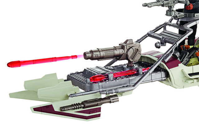 這次等級II(Class II)系列所推出的三款載具,搭配了3.75吋人偶比例所重現的電影原版造型,將《星際大戰:原力覺醒》中的反派勢力 - 第一軍團雪地運兵船、主角Finn 與Rey 在賈庫沙漠中馳騁的沙漠飛艇以及擁有許多粉絲喜愛的波巴‧費特的座機「奴隸號」完全立體化!這一款載具能夠完全相容孩之寶所推出的3.75吋人偶,讓人偶搭乘重現電影場景之外,還依照等級II(Class II)系列的特色,在載具上設計了許多可動性武器與發射武器的機關,並附有裝飾貼紙用以更加強化裝飾。
