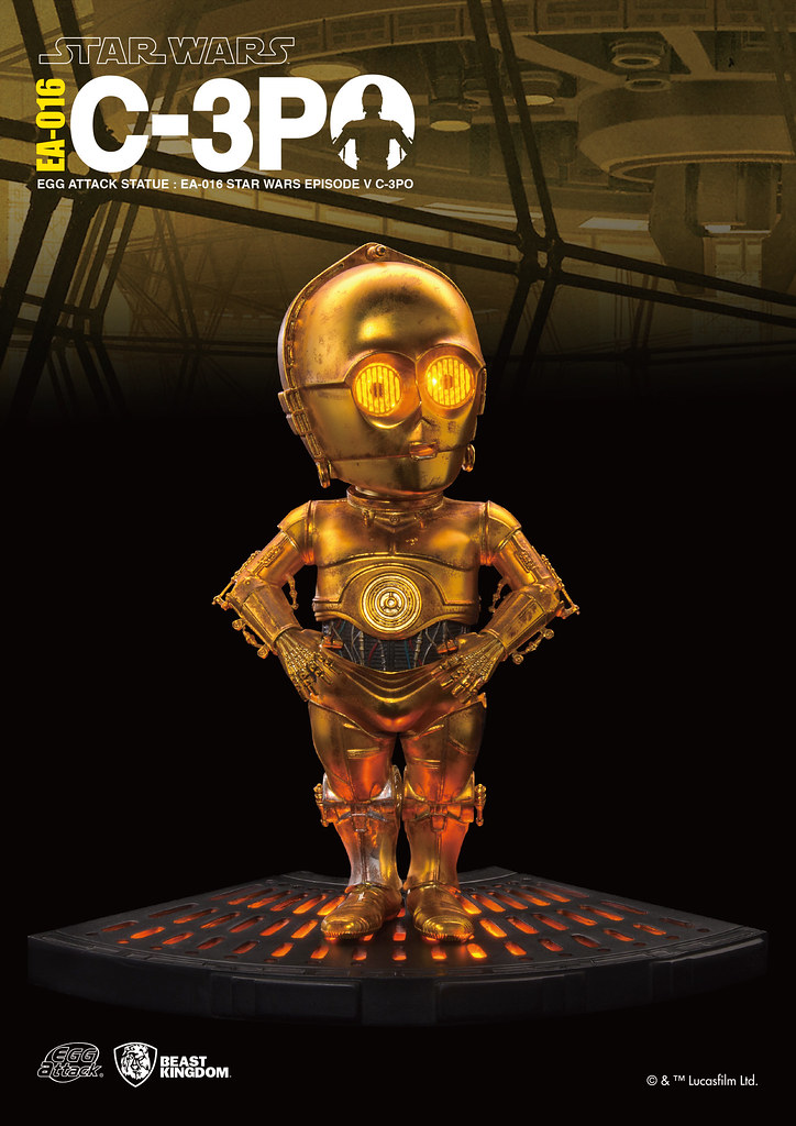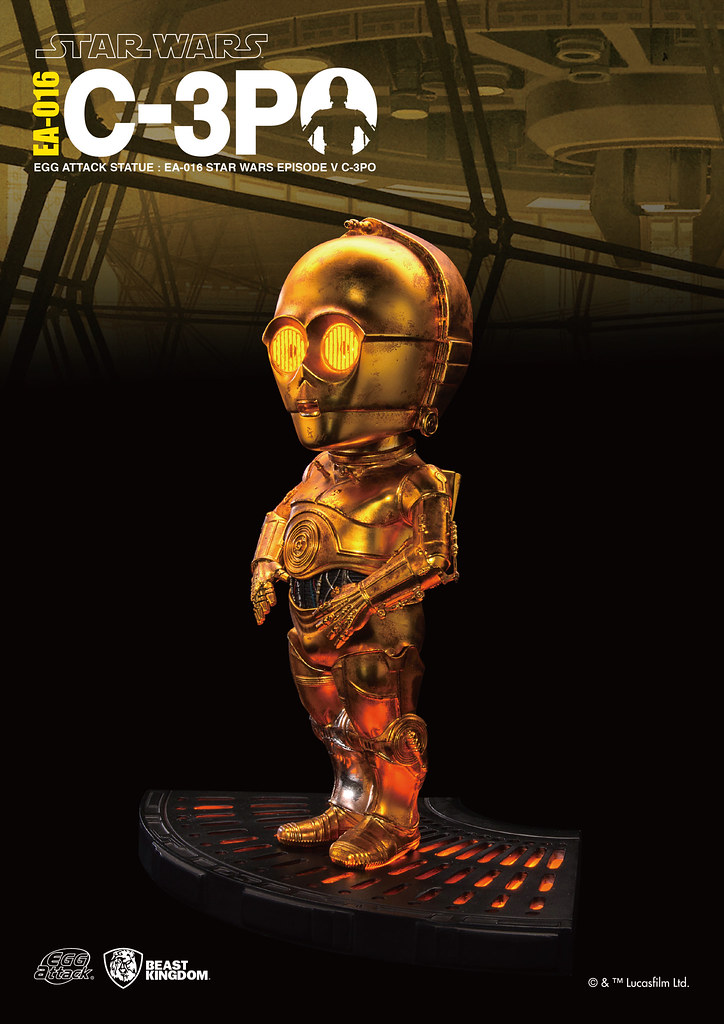 這次所推出的作品,延續了Egg Attack 慣例的特殊Q版比例,使用其獨特的造型比例來詮釋經典角色C-3PO 的造型。除此之外,塗裝採用了特殊的舊化塗裝技術,呈現出其金色外殼與銀色的右腿質感;並且在身體內部裝置了發光機能,能夠重現原作中C-3PO 的發光眼模樣,並且還有語音機能,能夠發出三種出自原作的原版音效。