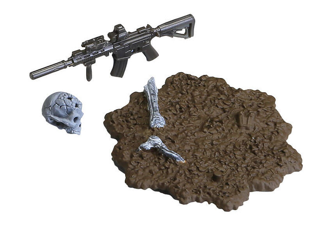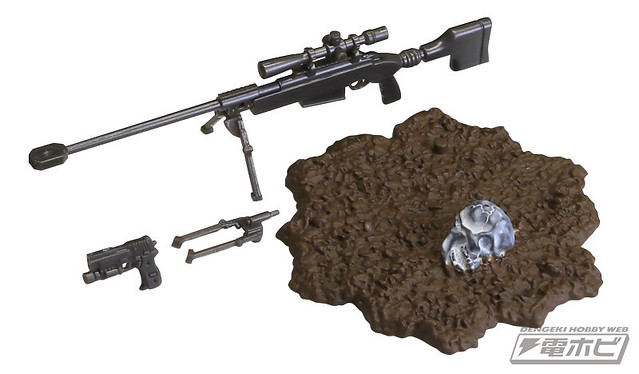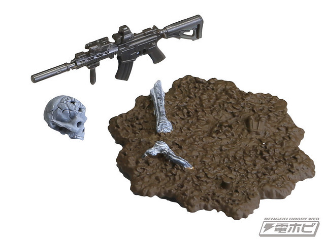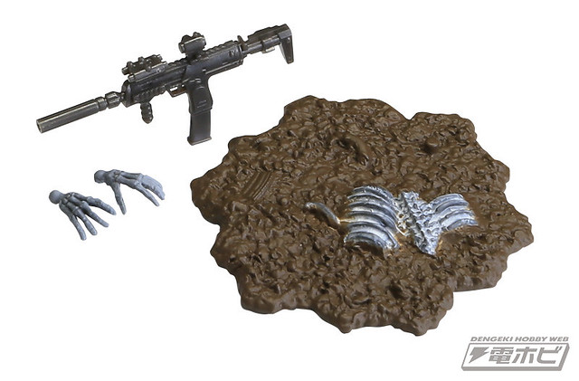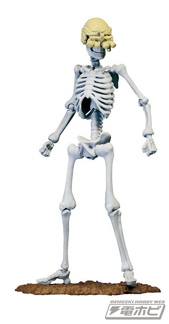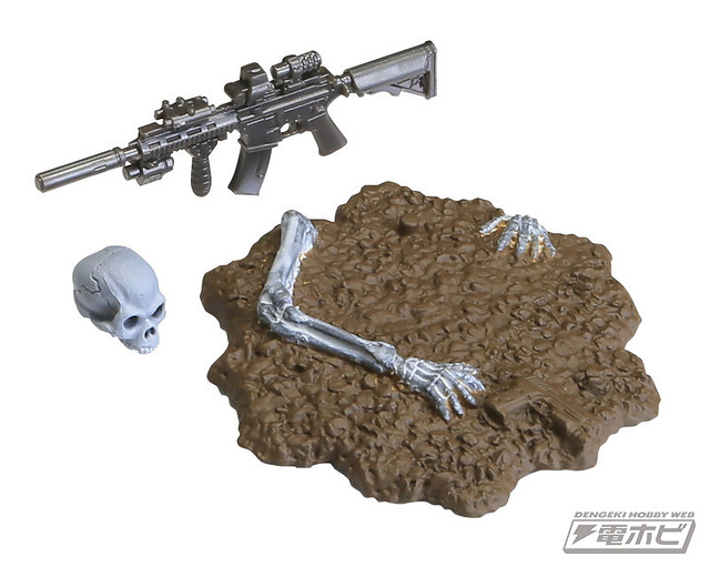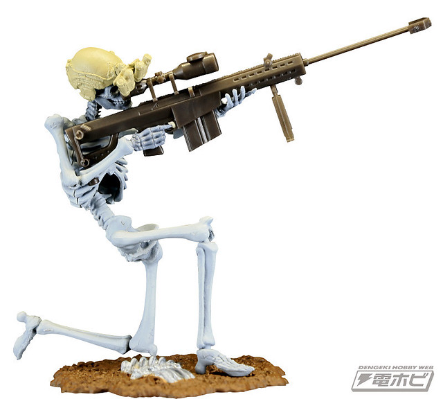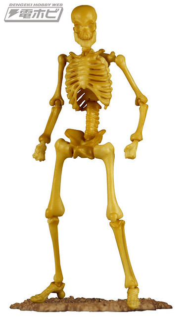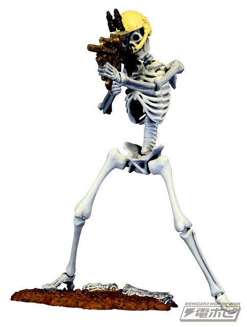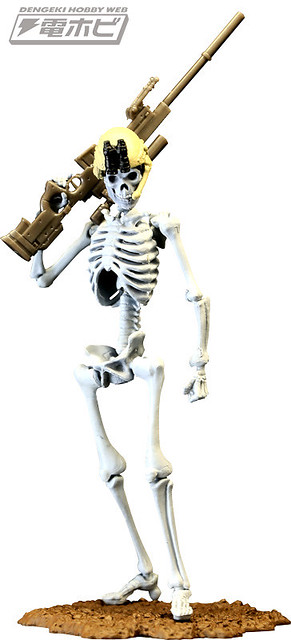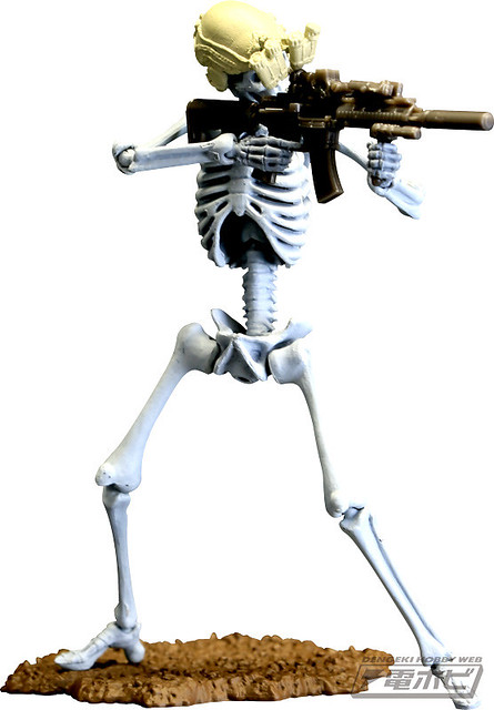 在本體編預計推出五款的骸骨士兵,武器編的話預計推出有七款式的武器槍等等,可以自己任意搭配武器和裝備以組成為暗殺小隊或是突擊自殺隊等等,之前dengeki網站近日先行公開了這款膠囊Q博物館系列的「骸骨士兵」之作。
