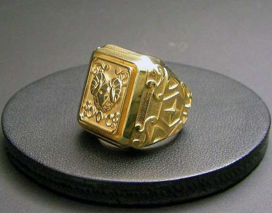 這一款戒指,是以《聖鬪士星矢》中登場的黃金聖鬪士所使用的「黃金聖衣箱」(ゴールドクロスボックス)的造型作為概念,採用大學戒(College ring / カレッジリング)的型式設計,並採用925純銀製作。