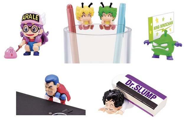 此次一樣將漫畫中的角色人物加上一些功能變成有趣的桌上擺飾,像是笑彈大王可以夾名片、千兵衛是收納橡皮擦的功能、酸梅超人是手機架等等的設計,逗趣的可美是變成杯緣子,阿拉蕾則是呈現經典玩大便的模樣,喜歡《怪博士與機器娃娃》的玩具人千萬別錯過了歐!