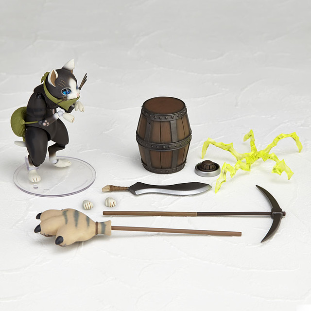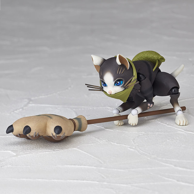 漸受好評的Vulcanlog可動系列才介紹預計推出的隨行艾路貓,接著下一波則是預計接著推出賊貓 梅拉露 メラルー(名稱暫譯),梅拉露在《魔物獵人》遊戲當中是長得像貓的獸人族會從獵人等等身上竊取物品,然後帶回自己的巢穴裡,此次將比身體還要大的特色武器有著「肉球」的賊貓棒也完整呈現。