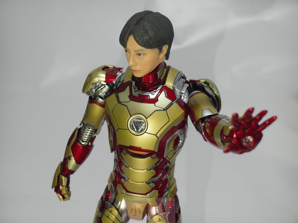 這是Hot Toys史上第一隻推出1/4大尺寸的超可動鋼鐵人 (以往都是1/6比例),所以特別讓人熱血沸騰。看到栩栩如生,比蠟像還像,比真人還真的東尼頭雕換上去之後,握~的天啊,這是玩具嗎?這是公仔嗎?這是蠟像嗎?都不是....