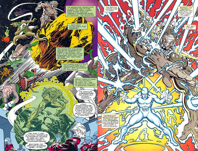 隨後,生物來到綠燈軍團總部的歐亞星,在那裡他殺死眾多的綠燈俠,也殺死一個宇宙守護者。最終,生物來到一個名為Calaton的星球,該星球皇室為了保護自己人民,犧牲自已融合成一個純能力生命體The Radiant,成功殺死該生物,並穿上他們星球的葬服,裝在葬禮船中射往太空。