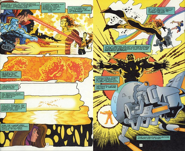被Parallax(視差怪)附身的綠燈俠海爾‧喬丹,促發了 Zero Hour這個影響時空的事件,超人死敵Brainiac(魔神腦)藉此能去時間盡頭救出毀滅日,因為他想利用毀滅日復活進化的特色,做為自己的新身體。但在正義聯盟努下,以及毀滅日自身意志的抵抗下,魔神腦失敗了,而正義聯盟則透過傳送技術,利用四個傳送點不斷循環傳送,讓毀滅日一直處在細胞重組和毀滅的過程中。