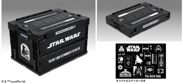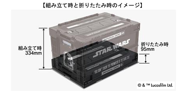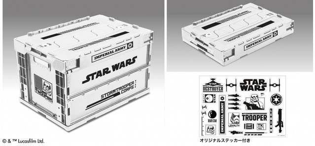 這一款極具紀念價值的折疊收納箱,是以帝國軍的運輸箱為概念來設計,將推出達斯維德(黑色)&帝國暴風兵(白色)兩種版本,50.1公升的容量折疊之後高度從334mm壓縮成95mm。採用實際物流現場所使用的收納箱來製作,不論是強度、耐久性都是業界標準。箱子上將使用角色的經典圖樣、台詞與「STAR WARS」字體LOGO作為裝飾。除此之外,還將搭配原創設計的裝飾貼紙,讓各位星戰迷能夠自由裝飾自己的收納箱,打造出獨一無二的原創設計款式。