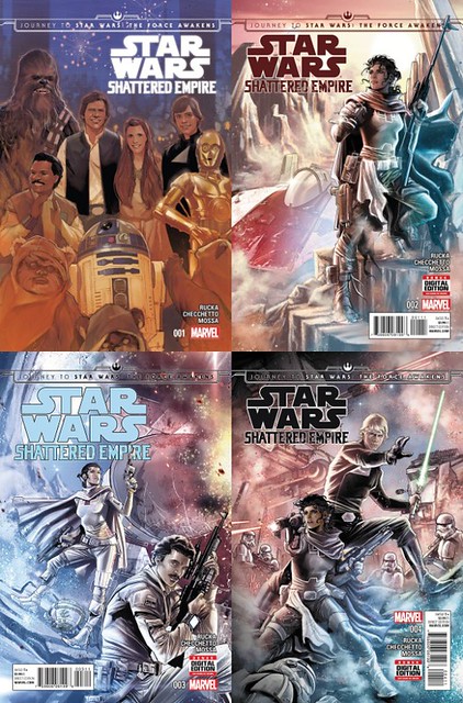 Star Wars: Shattered Empire是漫畫故事,時間點跟第六集的恩多戰役同時進行,故事主角為反抗軍成員的Shara Bey(女),為A翼戰機綠色中隊的王牌駕駛,並有一個同樣為反抗軍的老公Kes Dameron。Shara Bey在第二死星戰役時,是負責援護千年鷹號進入死星的成員之一,他的老公則在恩多星上,跟韓等人進行破壞死星護罩基地的作戰中。